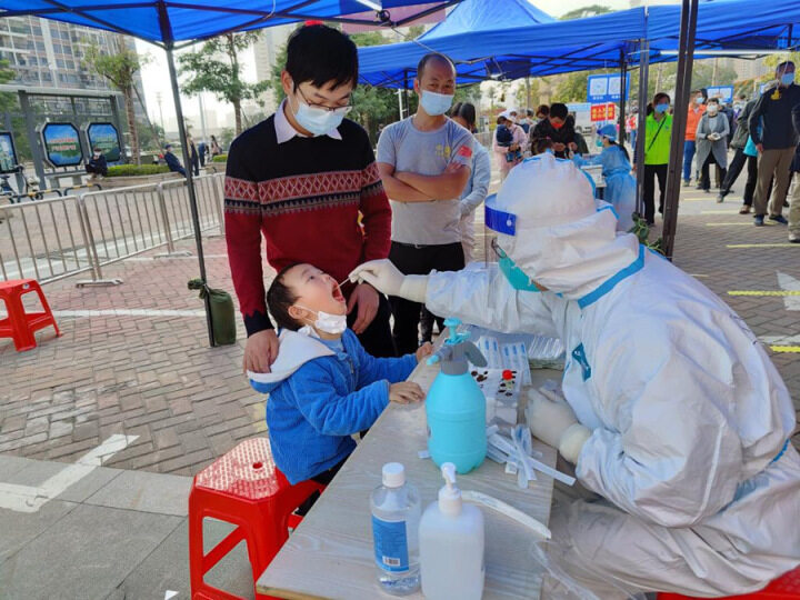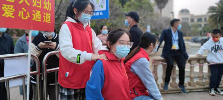 为出现头晕症状的低血糖的孕妇开设“特殊通道”,现场安排优先检测并提供牛奶和巧克力等补给品;志愿者全程陪同受检者安抚小朋友;开设“老人妇幼爱心通道”,为智能手机操作不熟练,或是没有智能手机的老年人提供帮助……1月7日至10日,记者走访了西区街道万达广场、世纪城、海惠广场等多个核酸检测点,见到核酸检测工作有序进行的同时,也见到了核酸检测点中展现出来的“人情味”。