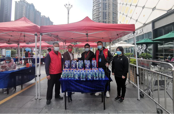 万达广场核酸检测点收到热心商铺送来的饮品。