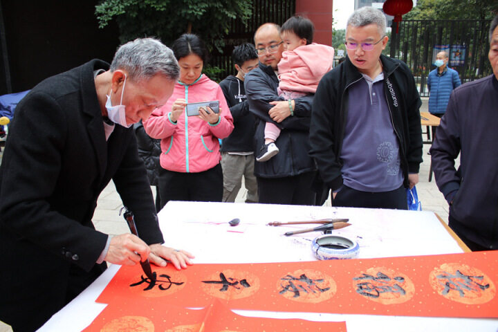 惠州健康文化协会志愿者挥春送毫。