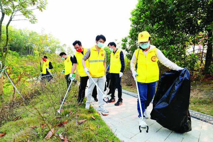 志愿者沿途清理垃圾。惠州日报记者张艺明 摄