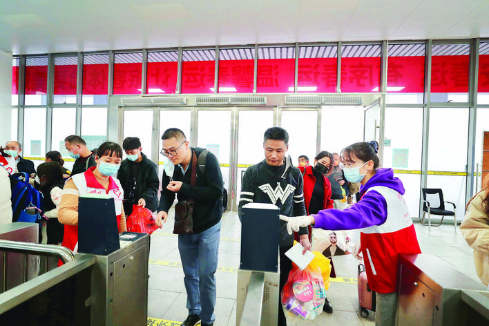春运首日,惠州火车站的人流明显比平日增加,进站口,旅客们有序排队扫码。作为春运工作重要组成部分,暖冬行动已经陪伴返乡旅客走过15个年头,成为各级团组织围绕中心、服务大局的重要工作载体,成为广大青年志愿者服务群众、服务社会的重要途径。本次暖冬行动春运志愿服务从1月17日起至2月25日,为期40天,团市委计划每天招募100名志愿者,重点围绕疫情防控宣传提醒、健康码出示指引、重点人群帮扶、旅客取检票指引、综合咨询等服务内容,在火车站、汽车站、高铁站、轻轨站、机场等重要交通枢纽点开展春运及疫情防控志愿服务。