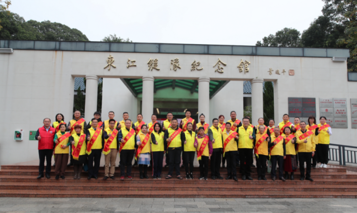 惠州市“中国好人”、“广东好人”、全国道德模范等代表在东江纵队纪念馆前合影。