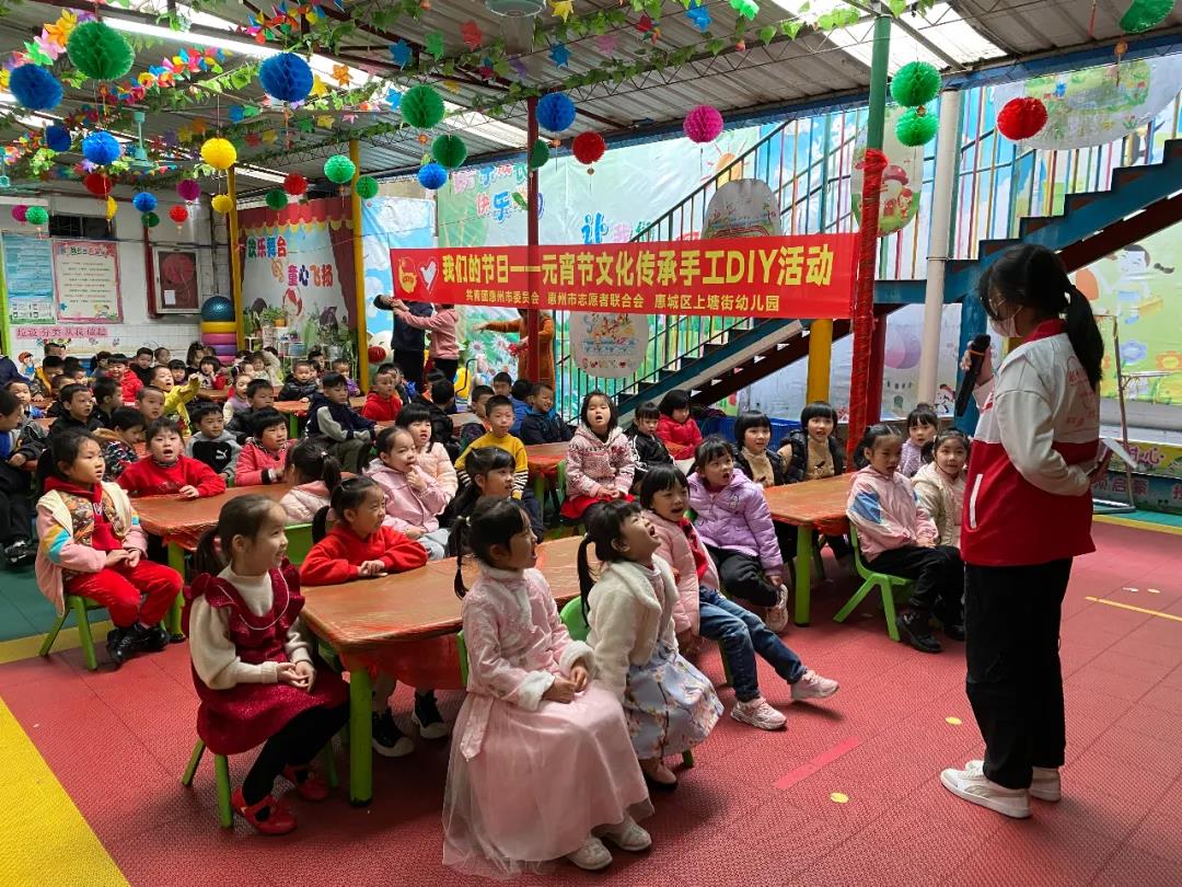 正月十五闹元宵。时值元宵佳节,惠城区上塘街幼儿园里格外热闹,由共青团惠州市委员会、市志愿者联合会、惠州市青春社区志愿服务站以及惠城区上塘街幼儿园联合开展的“我们的节日”元宵节文化传承手工DIY活动正在火热进行中。