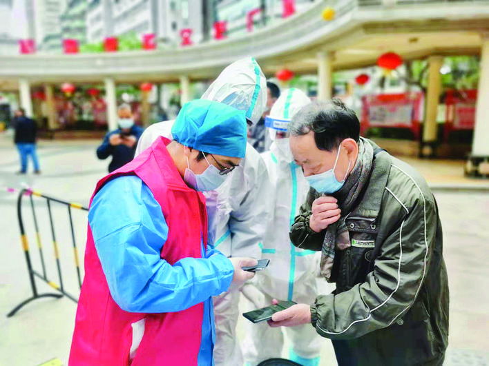 “阿叔您好,做核酸检测来这边排队,要间隔一米距离哦,粤康码要打开,我帮您……”春节期间,在横沥镇洋圳村防疫工作队伍中,郑雪茹等4名在校的返乡大学生主动请缨,加入该村防疫志愿者队伍,为防疫工作贡献青春力量,他们友善、热情的态度得到村民的积极配合。