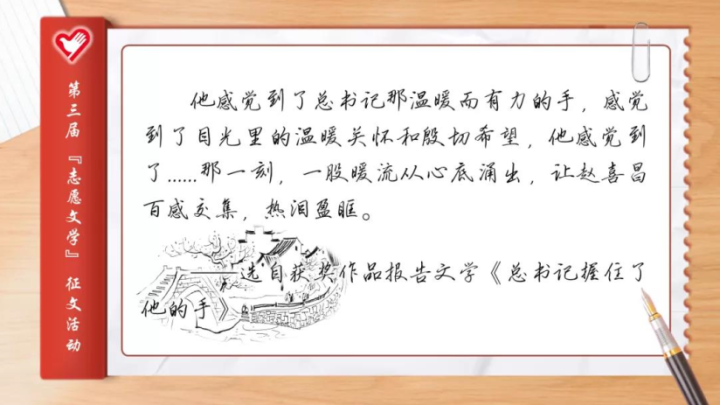 据悉,由共青团中央、中国作家协会联合举办的“志愿文学”征文活动自2017年以来已举办三届,旨在用文学的形式展现志愿者事业在党的领导下取得的成就,展现志愿者在平凡岗位上无私奉献的精神风貌和动人事迹,传递“奉献、友爱、互助、进步”的志愿精神。